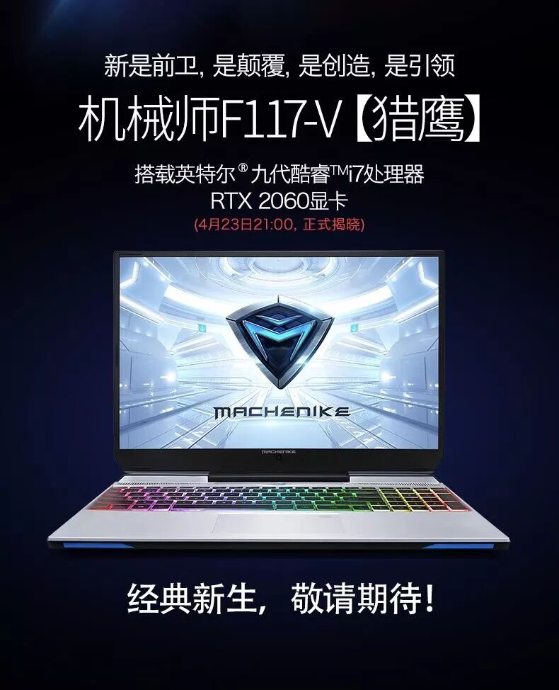 【序幕拉开,九代来袭】全新F117-V「猎鹰」游戏本,最高搭载第九代英特尔酷睿i7处理器+RTX 2060显卡,硬核配置全面加身,双强芯带来了更流畅的游戏体验,与更真实的游戏画面。